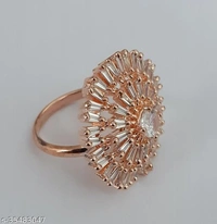 Twinkling Bejeweled Rings Base Metal: Alloy Plating: Silver Plated Stone Type: American Diamond Type: Finger Ring Multipack: 1 Sizes:Free Size AMERICAN DIAMOND STUDDED ROSE GOLD FINISHED LADIES FINGER RING Country of Origin: India